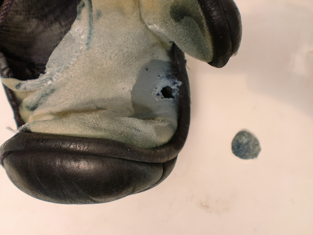 小手の手の内に小さな穴がよくあきます。最近は接着剤でふさぐようなことできるらしい